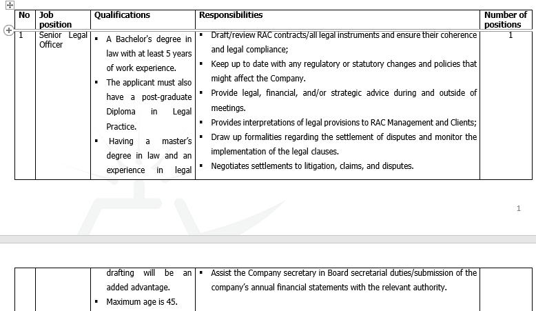 Rwanda Airports Company (RAC) wishes to recruit qualified, hardworking, well-motivated and experienced employees on an open ended contract basis with attractive remuneration packages.