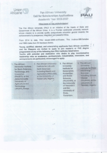 3. SCHOLARSHIP OPPORTUNITY: Pan Africa University Call for Scholarships Applications 2025-2026
