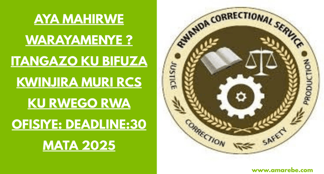 AYA MAHIRWE WARAYAMENYE?ITANGAZO KU BIFUZA KWINJIRA MURI RCS KU RWEGO RWA OFISIYE; DEADLINE:30 MATA 2025