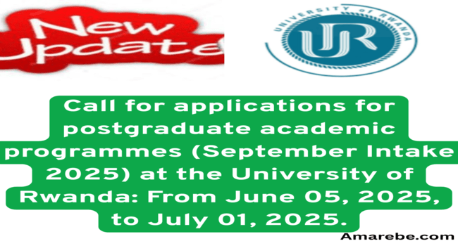 The University of Rwanda informs prospective applicants that the online application system for receiving applications for Postgraduate Academic Programmes to be offered in its Colleges during the Academic year 2025, September intake is open from June 05, 2025, to July 01, 2025.