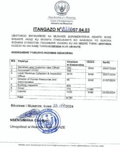 Bubicishije kurubuga rw’Akarere, Ubuyobozi bw’Akarere ka Musanze bwamenyesheje abantu bose basabye akazi kumyanya itandukanye ko gahunda yo gukora ikizamini cyanditse iteganijwe guhera ku wa mbere Taliki ya 29/07/2027 kugeza kuwa Kane Taliki ya 01/08/2024 muri UR-HUYE.
