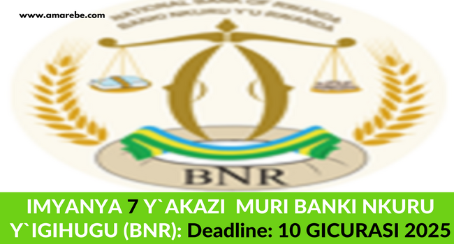 IMYANYA 7 Y`AKAZI MURI BANKI NKURU Y`IGIHUGU (BNR): Deadline: 10 GICURASI 2025