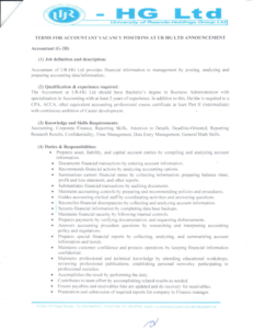 Vacancy position of Accountant at UR HG Ltd: Deadline: 25/08/2023